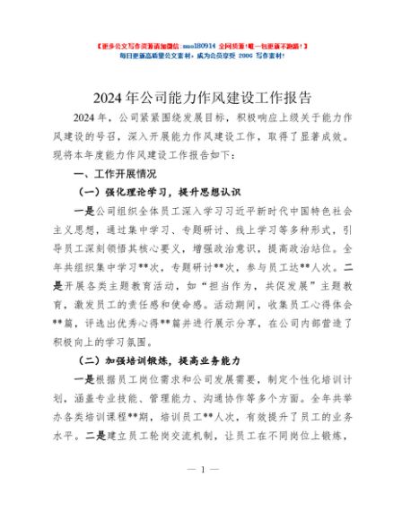 / 2024年公司能力作风建设工作报告