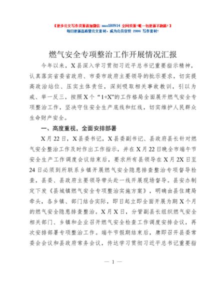 / 燃气安全专项整治工作开展情况汇报
