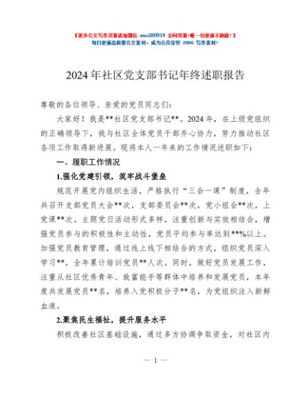 / 2024年社区党支部书记年终述职报告