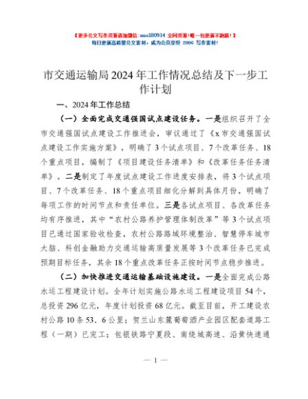 / 市交通运输局2024年工作情况总结及下一步工作计划