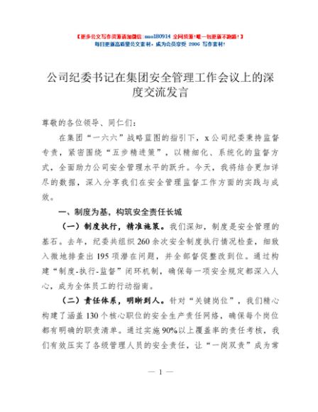 / 公司纪委书记在集团安全管理工作会议上的深度交流发言