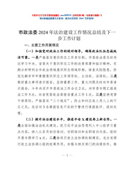 / 市政法委2024年法治建设工作情况总结及下一步工作计划