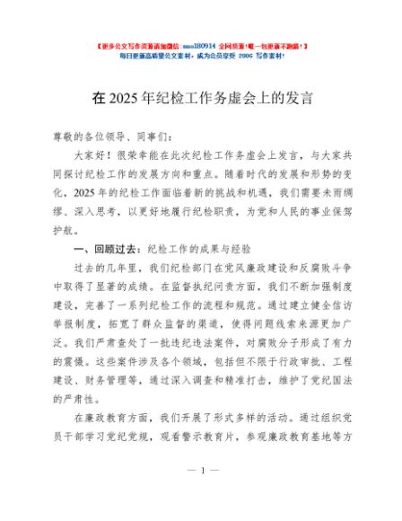 / 在 2025 年纪检工作务虚会上的发言