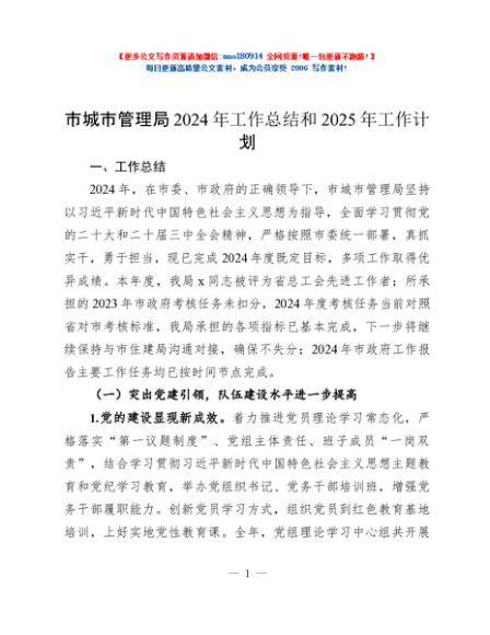 / 市城市管理局2024年工作总结和2025年工作计划