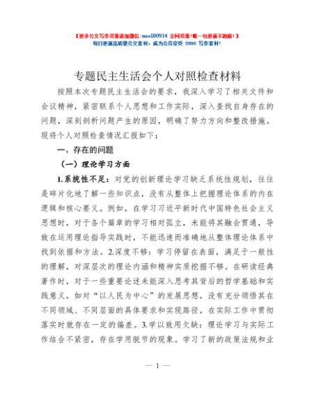 / 专题民主生活会个人对照检查材料