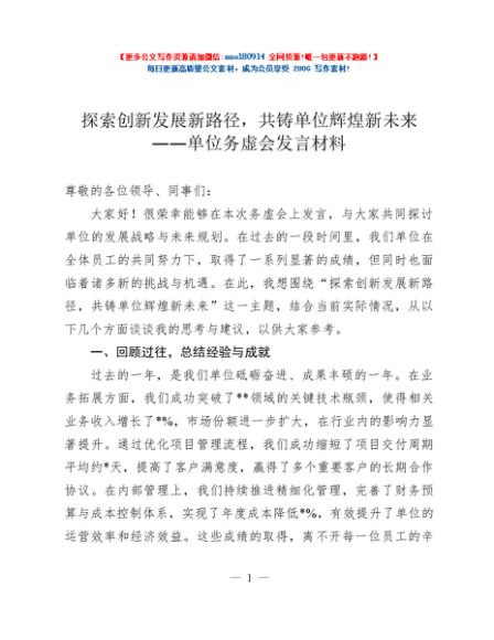 探索创新发展新路径,共铸单位辉煌新未来——单位务虚会发言材料