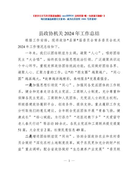 / 县政协机关2024年工作总结