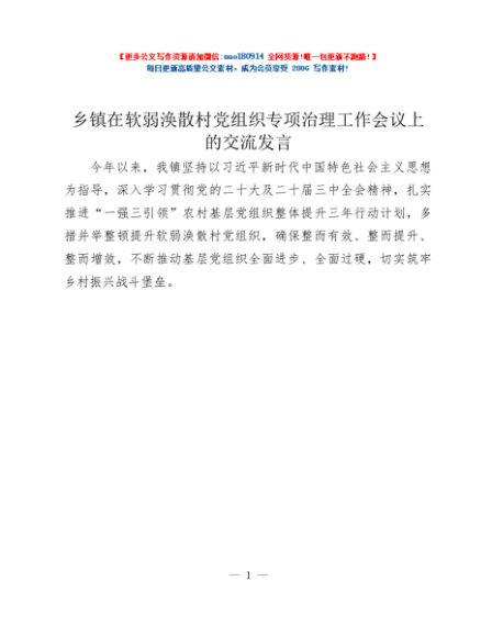 / 乡镇在软弱涣散村党组织专项治理工作会议上的交流发言