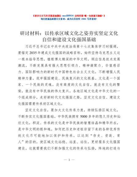 / 研讨材料:以传承区域文化之姿 夯实坚定文化自信和建设文化强国基础
