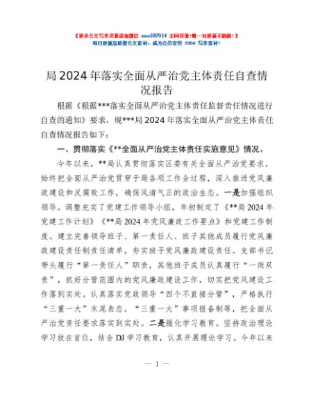 / 局2024年落实全面从严治党主体责任自查情况报告