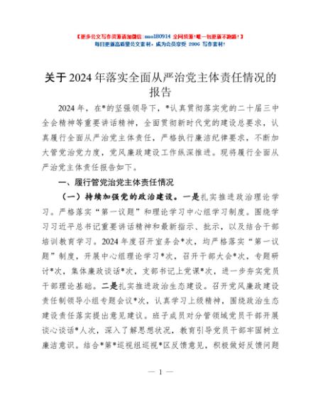 / 关于2024年落实全面从严治党主体责任情况的报告