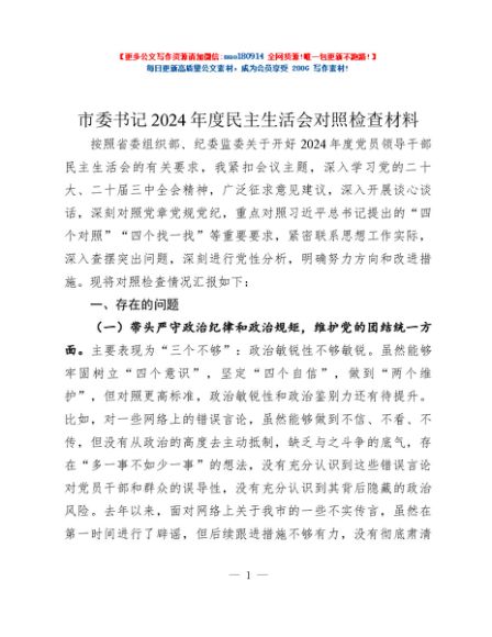/ 市委书记2024年度民主生活会对照检查材料