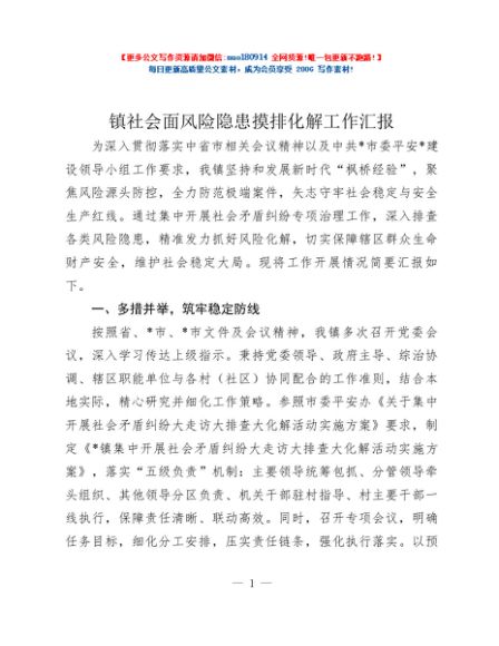 / 镇社会面风险隐患摸排化解工作汇报