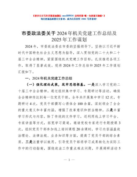 / 市委政法委关于2024年机关党建工作总结及2025年工作谋划