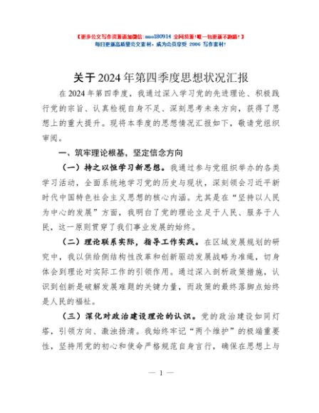 / 关于2024年第四季度思想状况汇报