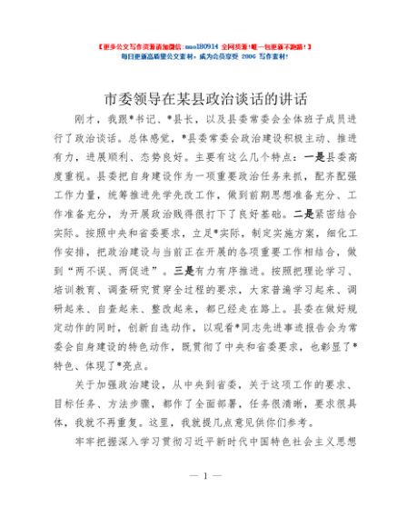 / 市委领导在某县政治谈话的讲话