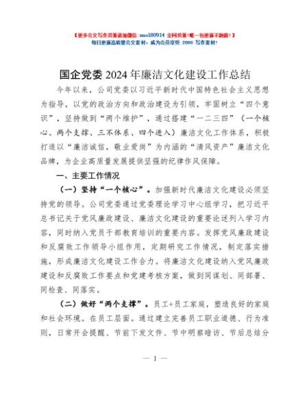 / 国企党委2024年廉洁文化建设工作总结