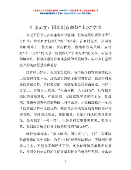 / 申论范文:因地制宜做好“山水”文章