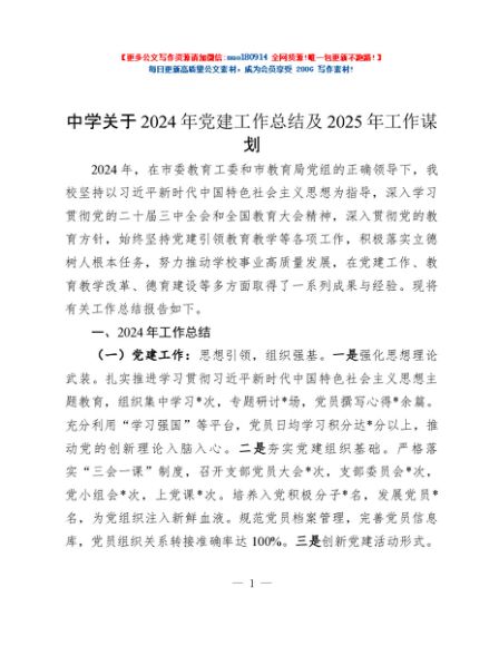 / 中学关于2024年党建工作总结及2025年工作谋划