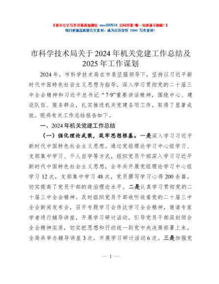 / 市科学技术局关于2024年机关党建工作总结及2025年工作谋划