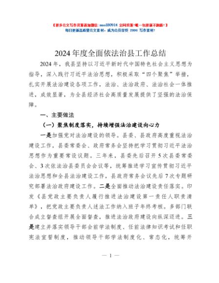 / 2024年度全面依法治县工作总结