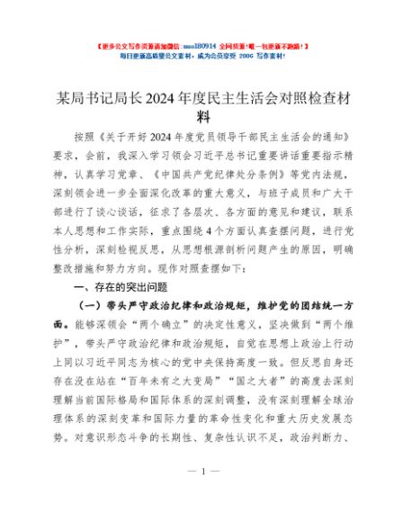 / 某局书记局长2024年度民主生活会对照检查材料