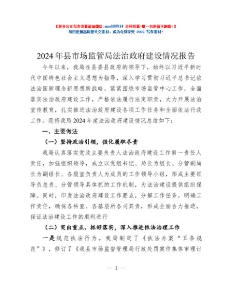 / 2024年县市场监管局法治政府建设情况报告