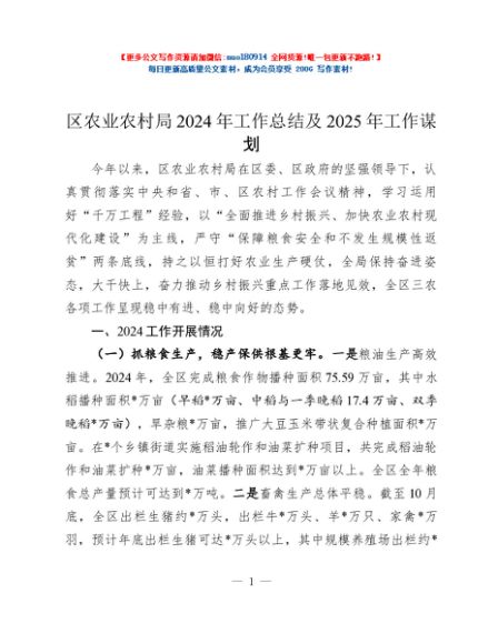 / 区农业农村局2024年工作总结及2025年工作谋划