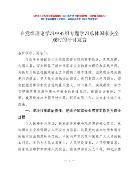 / 在党组理论学习中心组专题学习总体国家安全观时的研讨发言