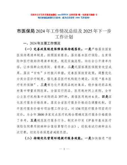 / 市医保局2024年工作情况总结及2025年下一步工作计划