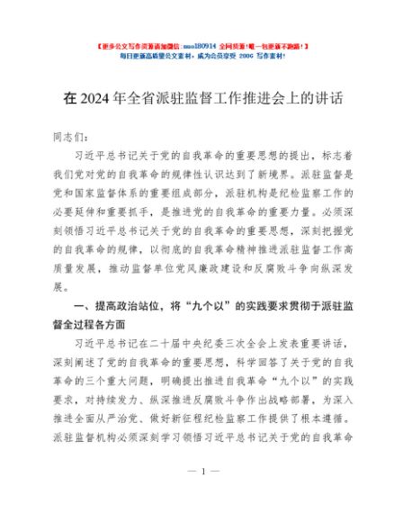 / 在2024年全省派驻监督工作推进会上的讲话