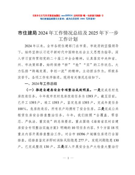 / 市住建局2024年工作情况总结及2025年下一步工作计划