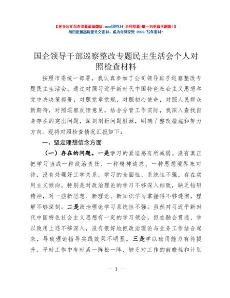 / 国企领导干部巡察整改专题民主生活会个人对照检查材料