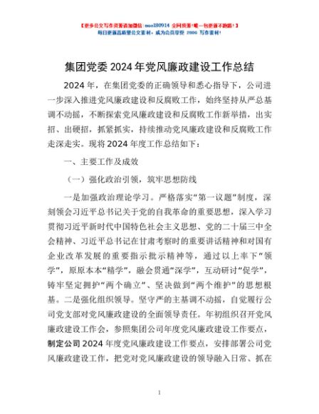 / 集团党委2024年党风廉政建设工作总结