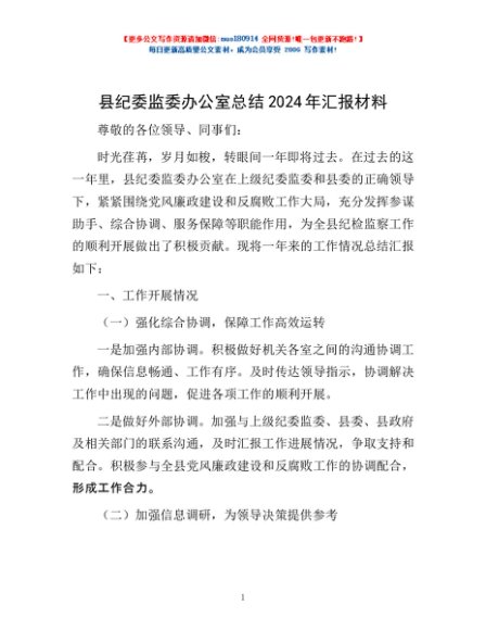 / 县纪委监委办公室总结2024年汇报材料