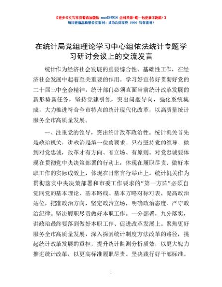 / 在统计局党组理论学习中心组依法统计专题学习研讨会议上的交流发言