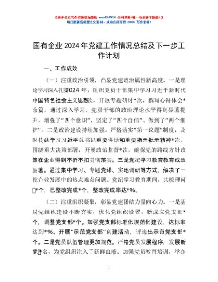 / 国有企业2024年党建工作情况总结及下一步工作计划