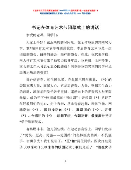 / 书记在体育艺术节闭幕式上的讲话