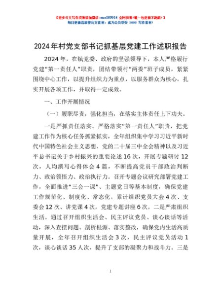 / 2024年村党支部书记抓基层党建工作述职报告