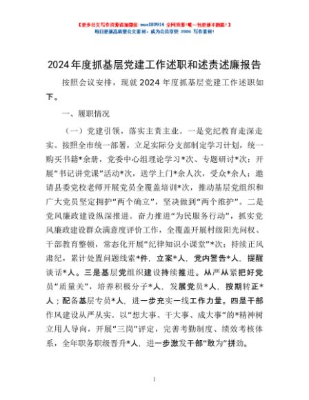 / 2024年度抓基层党建工作述职和述责述廉报告