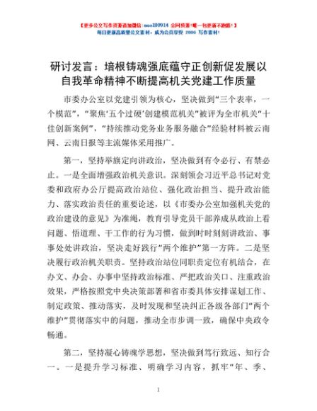 / 研讨发言:培根铸魂强底蕴 守正创新促发展 以自我革命精神不断提高机关党建工作质量