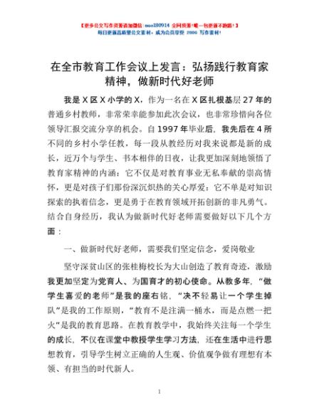 / 在全市教育工作会议上发言:弘扬践行教育家精神,做新时代好老师