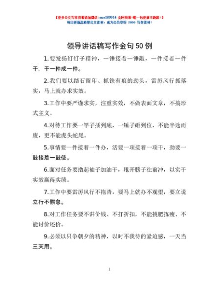 / 领导讲话稿写作金句50例
