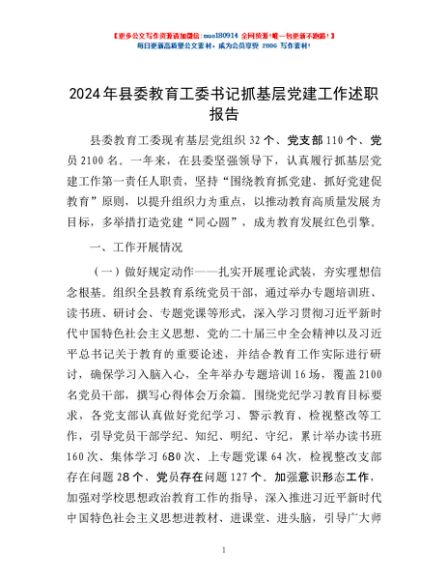 / 2024年县委教育工委书记抓基层党建工作述职报告
