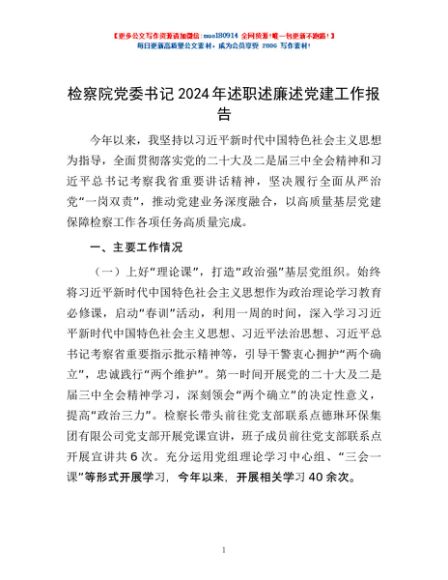 / 检察院党委书记2024年述职述廉述党建工作报告