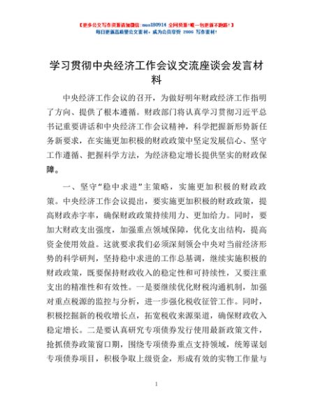 学习贯彻中央经济工作会议交流座谈会发言材料