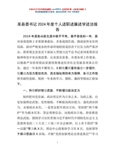 / 某县委书记2024年度个人述职述廉述学述法报告