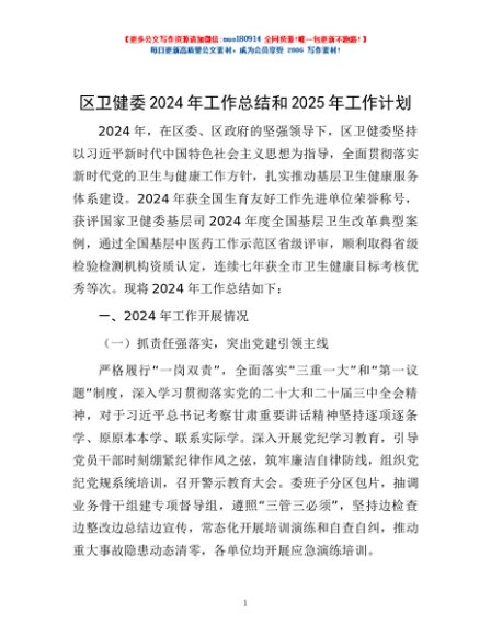 / 区卫健委2024年工作总结和2025年工作计划