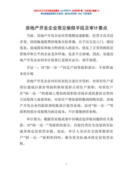 / 房地产开发企业常见偷税手段及审计要点
