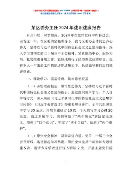 / 某区委办主任2024年述职述廉报告